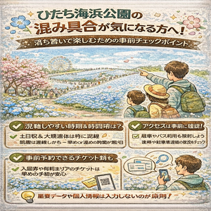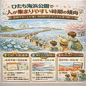 この記事ではひたち海浜公園の混雑について、当日の様子を見極める考え方と時期ごとの混みやすさの目安を整理しながら、できるだけ落ち着いた時間を過ごすためのヒントをまとめています。