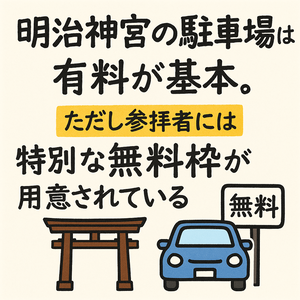 明治神宮では参拝者向けに一定時間無料となる運用がされていますが、時期や状況により変更される可能性があります。